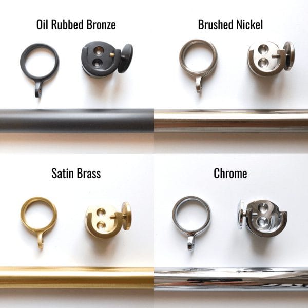 Our Cafe Curtain hardware is premium quality and comes in 4 great colours in a 3/4″ diameter!