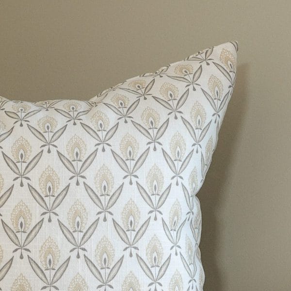 This 20 x 20 designer toss pillow cover is a 55% linen, 45% cotton floral leaf pattern suitable for any space.