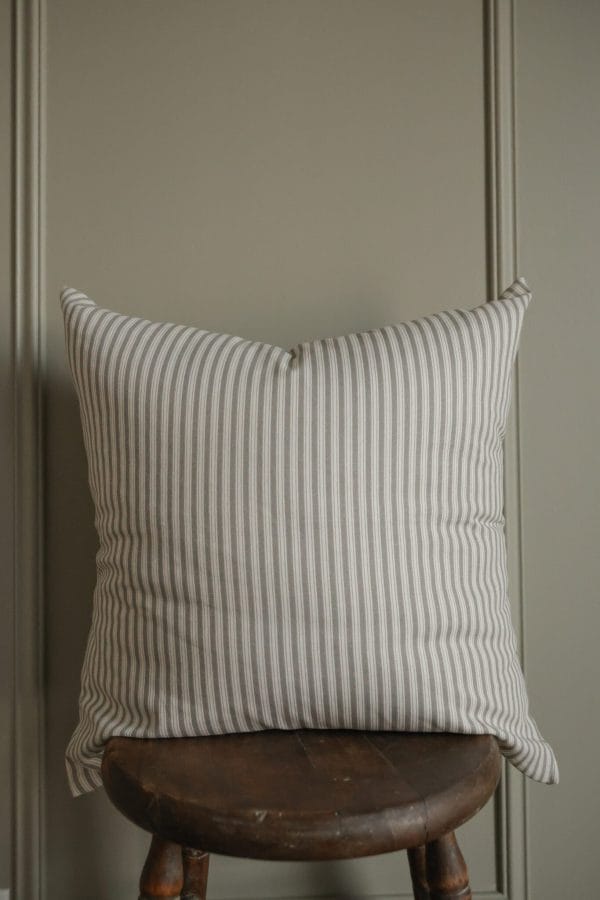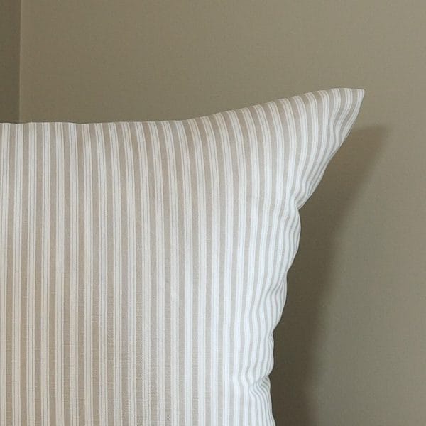 This 20 x 20 designer toss pillow cover is a 100% cotton cutie stripe suitable for any space.
