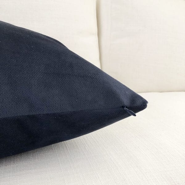 Velvet for everyone! This 20×20 designer toss pillow cover is soft and plush and will help to incorporate a bit of luxe to your bed or sofa. A sexy inky blue that is a perfect neutral to pair with “Morrow”, “Lounge” or “Acadia”.