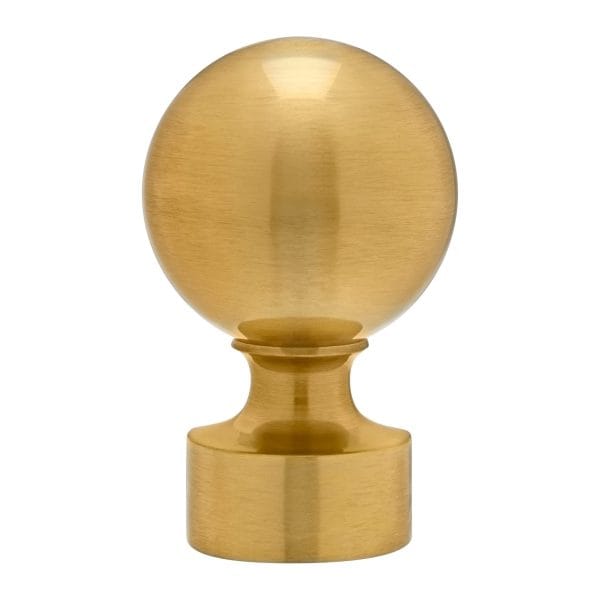 The complete set includes a robust 1⅜” diameter curtain rod, powder-coated satin brass brackets, and finely crafted finials. The finish features a lightly reflective sheen, offering a subtle glow that complements both natural and artificial lighting. This modern satin brass tone adds warmth and character to interiors without being overly flashy, creating a perfect balance between minimalism and luxury.