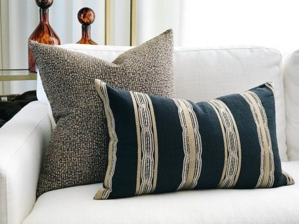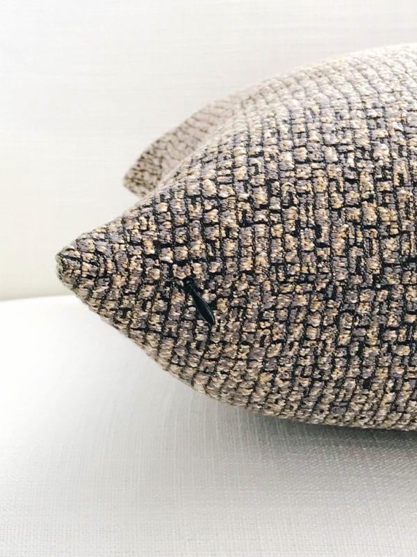 This 20 x 20 designer toss pillow cover will help you stay up until midnight and party even though you want to crawl into bed and read a book! No but for real, it’s a super serious nubby textured gold and black threaded delight that reads as a solid but ties together all the tones in this collection.