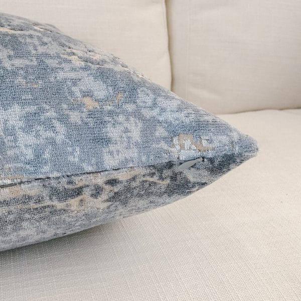 Want to take your pillow game up a notch?  This 20 x 20 designer toss pillow cover is the perfect way to add a bit of luxury to your sofa or bed.  It’s a dappled velvet in shades of blues and creams and greys, and is classic and soft and pretty.